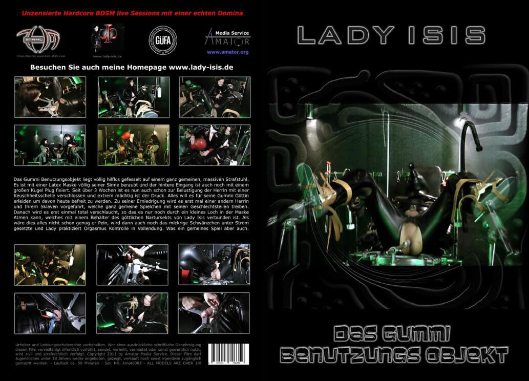 Het rubberen object ligt volledig hulpeloos vastgebonden op een zeer gemene, massieve strafstoel. Het is volledig beroofd van zijn zintuigen met een latex masker en de achteringang is ook vastgezet met een grote balplug. Al meer dan 3 weken zit hij vast met een kuisheidsklem voor het vermaak van de meesteres en de druk is extreem krachtig. Hij zal er alles voor over hebben om vandaag bevrijd te worden van zijn rubberen godin. Om hem te vernederen wordt hij eerst voorgesteld aan een andere meesteres en haar slavin, die smerige spelletjes spelen met zijn edele delen. Daarna wordt hij helemaal afgespoten, zodat hij alleen nog kan ademen door een klein gaatje in zijn masker, dat verbonden is met een vat met het goddelijke nartursect van Lady Isis. Alsof dit alles nog niet genoeg kwelling is, wordt het nietige staartje ook nog eens geëlektrocuteerd en oefent Lady de orgasmecontrole tot in de perfectie. Maar wat een gemeen spel.