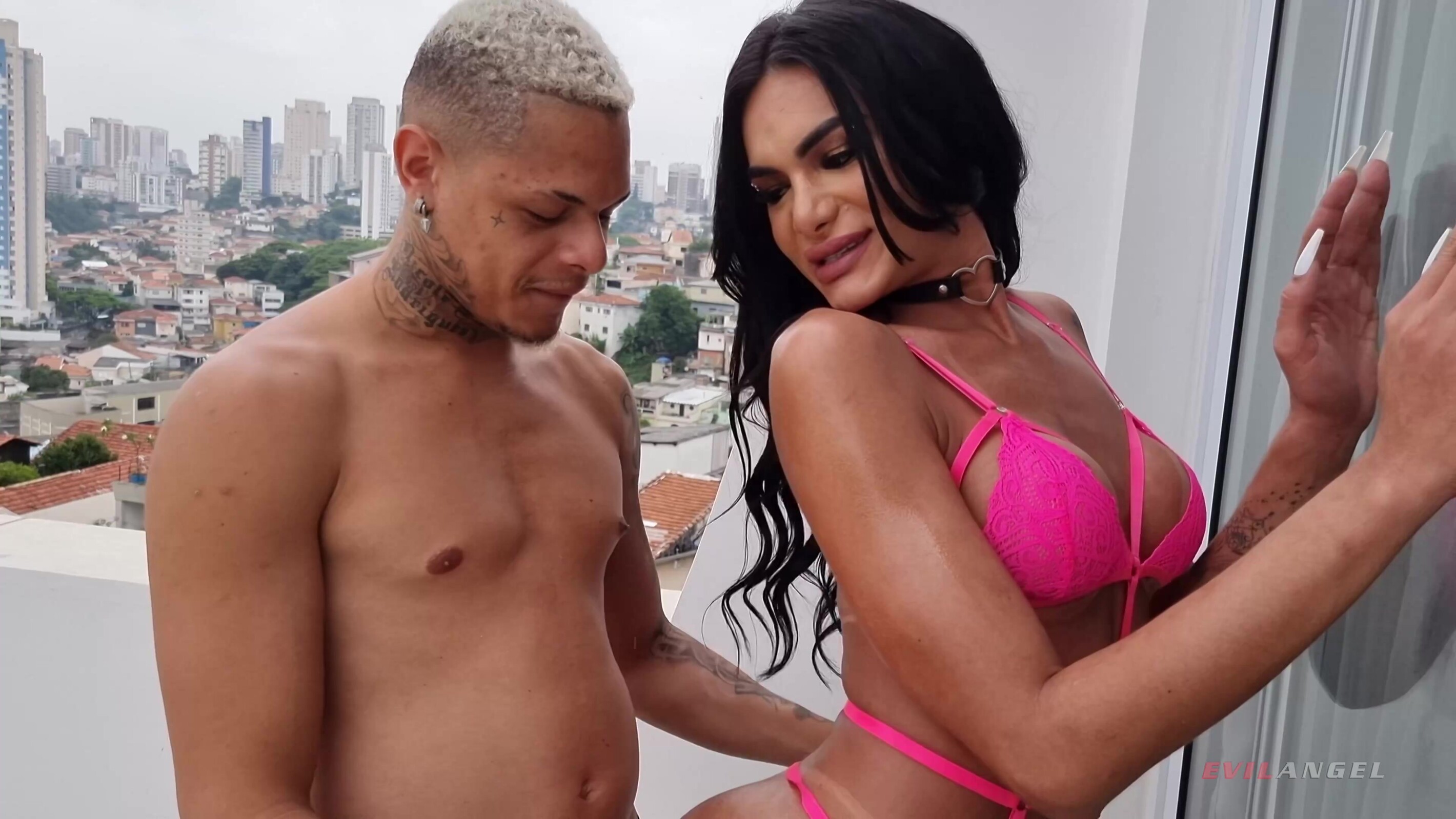 In "Trans-Active 32", gooit regisseur Joey Silvera zes scènes neer die gekenmerkt worden door charme en persoonlijkheid, om te laten zien waarom hij de decaan is van XXX transseksueel entertainment. Een TS schoonheid voert een solo-expositie uit; hete T-meisjes verleiden stoere dekhengsten in twee dates, waaronder een trio; twee scènes zijn trans-op-trans ontmoetingen; en Joey koppelt de fantastische, sprankelende TS Andylynn Payne aan de cisgender vrouwelijke porno superster Emma Rosie! Toned T-stunners Shakira Brazil en Sofia Havenna dragen bijpassende lingerie met zwarte netkousen. Sofia's grote tieten zien er heet uit als ze Shakira pijpt. Ze pijpen elkaar. Sofia neemt een doggie-style anale slamming en ze sodomiseert Shakira. Ze wisselen cum facials uit en wisselen sperma uit in wellustige zoenen. De schattige brunette Andylynn plaagt en laat haar geoliede lichaam zien in een roze beha en een witte korte broek met een Lacy slipje. Haar erectie komt tevoorschijn! De verleidelijke trans pop met weelderige lippen masturbeert. De slanke blonde Emma danst, waarbij ze haar kleine, natuurlijke borsten laat zien. Ze kussen. Emma geeft een BJ. Andylynn's gebogen lul doorboort Emma's kutje. Ms. Rosie neemt een rectale reaming en proeft haar smaak via kont-op-mond pijpen. De dames delen 69. Andylynn eet haar kutje. Emma zit op Andylynn's gezicht. Andylynn proeft Emma's voeten en geeft zo toe aan haar voetfetisj. De meisjes delen sperma in slordige sneeuwbalzoenen. De donkerharige trans verleidster Kelly Melo rockt roze bikinilingerie en visnetten op een balkon met uitzicht op de skyline van de stad. De macho Henrique Miranda streelt Kelly's opvallende lichaam en ze kussen. Binnen deepthroat Henrique! Kelly pijpt hem in haar kont. Ze pijpt haar joint terwijl ze pijpt. Henrique beft Kelly in verschillende standjes terwijl ze haar gereedschap masseert. Kelly Fire vuurt lange strengen splooge over Henrique's open mond. Hij bevredigt haar tong. Ze wisselen de sperma uit in een kus. Verzengende TS brunette Lacany Batista pronkt met haar tieten en wrijft over de groeiende bobbel in haar kanten slipje. Ze buigt voorover met haar gebogen stijve tussen haar benen. De hengsten Alex Victor en Jin Matsui komen binnen voor een menage-a-trois! Beide kerels pijpen Kauany en likken haar kontgat. Ze beft hun beide rectums! Alex pijpt haar achterdeur. Jin komt tot een orgasme op Kauany's weelderige lippen terwijl Alex zijn poep op haar buik pompt. Kauany spuit haar prop op Jin's voorhoofd. In zwarte latex kleding en witte visnetten maakt sexy TS Isabella Fiorella het aanrecht schoon. Haar lange blonde haar omlijst haar mooie gezicht terwijl haar gebruinde grote borsten tevoorschijn komen. Ze laat haar string zakken en duwt langzaam een glazen dildo in haar sluitspier terwijl ze haar stijve staf streelt. Mevrouw Fiorella neukt zichzelf krachtig. Pervy Isabella legt het speeltje op het aanrecht, schuift het in haar kontgat en maakt een stuiterend ritje. De diva spuit een geiser van sperma. Shakira keert terug in een gebloemd tweedelig badpak met zwarte visnetjes; ze spant haar benen naar achteren, trekt aan haar vlees en pukt haar anus open. Zij en Isabella delen fellatio en 69; ieder ploegt de achtertuin van de ander. Shakira aanbidt Isabella's natte staaf, A2M. Isabella ejaculeert op haar buik en Shakira's mond. Shakira komt luid tot een climax en lanceert haar eigen ontlading op haar liezen. De babes kussen lieflijk en sluiten de heftige affaire af.