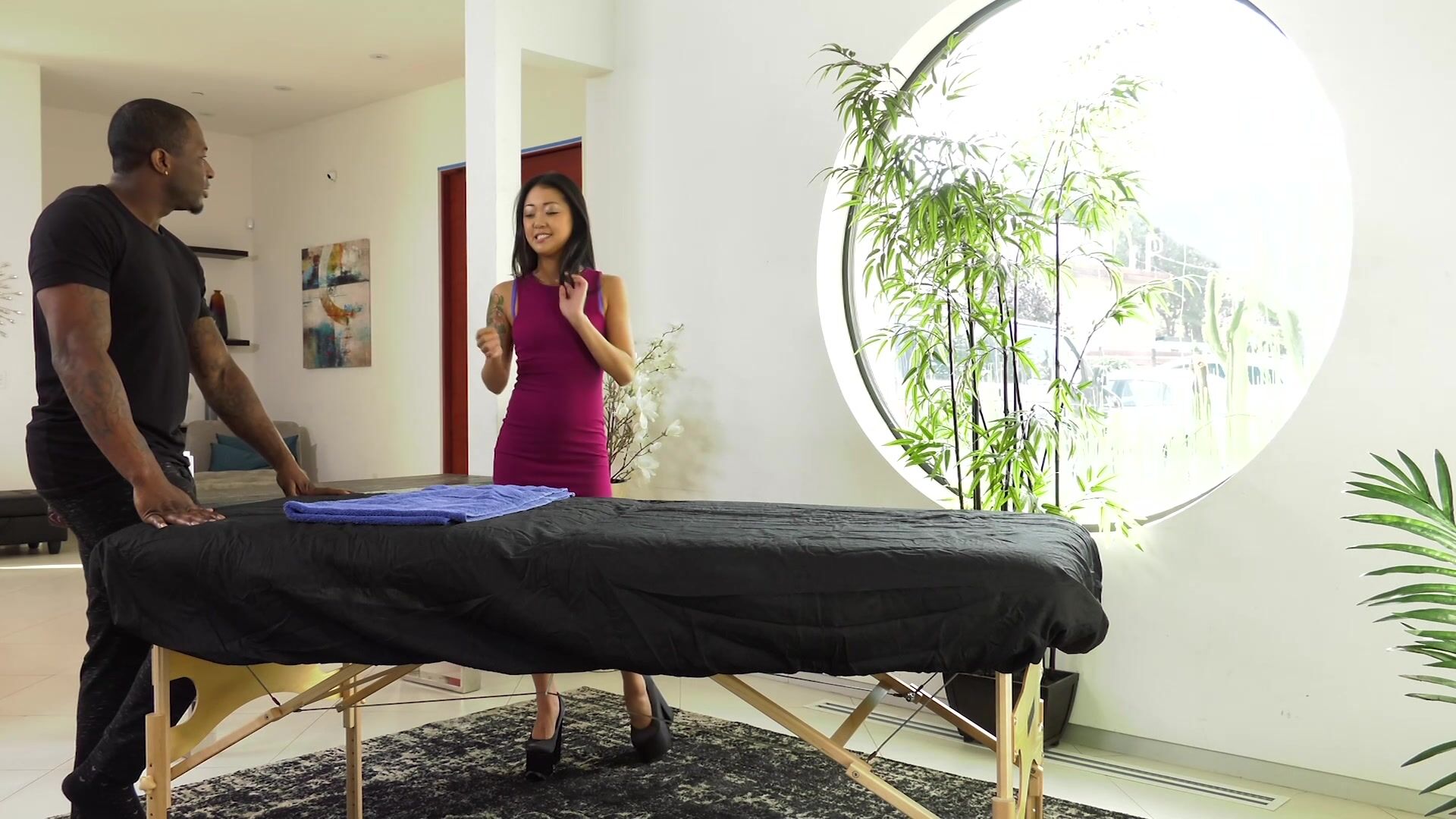 Deze masseur is goed met zijn handen maar zijn echte vaardigheden zaten in zijn gigantische harde pik. De massage was lekker, maar de pik was nog lekkerder. Ze was verbaasd toen zijn handen onder de handdoek gingen, maar dat was waar ze hoopte dat ze zouden gaan. Hij kon zien dat al haar spanning tussen haar benen zat.